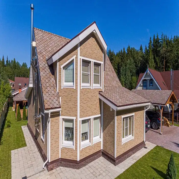 Гибкая черепица может применяться не только на малоэтажных жилых зданиях, но и при строительстве административных, жилых многоэтажных и других типов зданий.